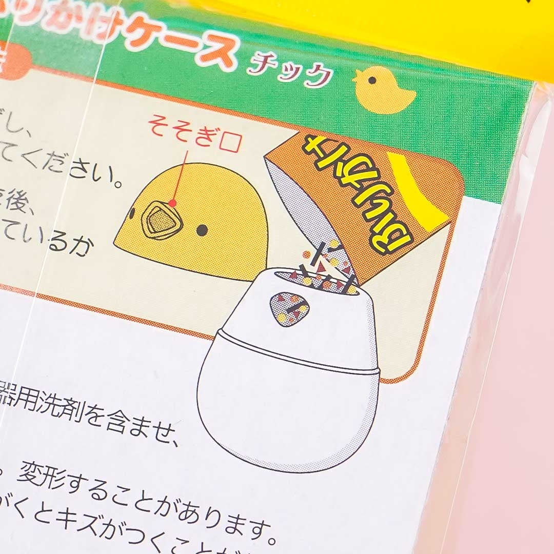 Furikake is a dry Japanese condiment that's usually sprinkled on top of rice, fish, or vegetables. Place your favorite furikake seasoning inside this cute container. Its lid is shaped like a chick! You can also use it to hold other spices.
