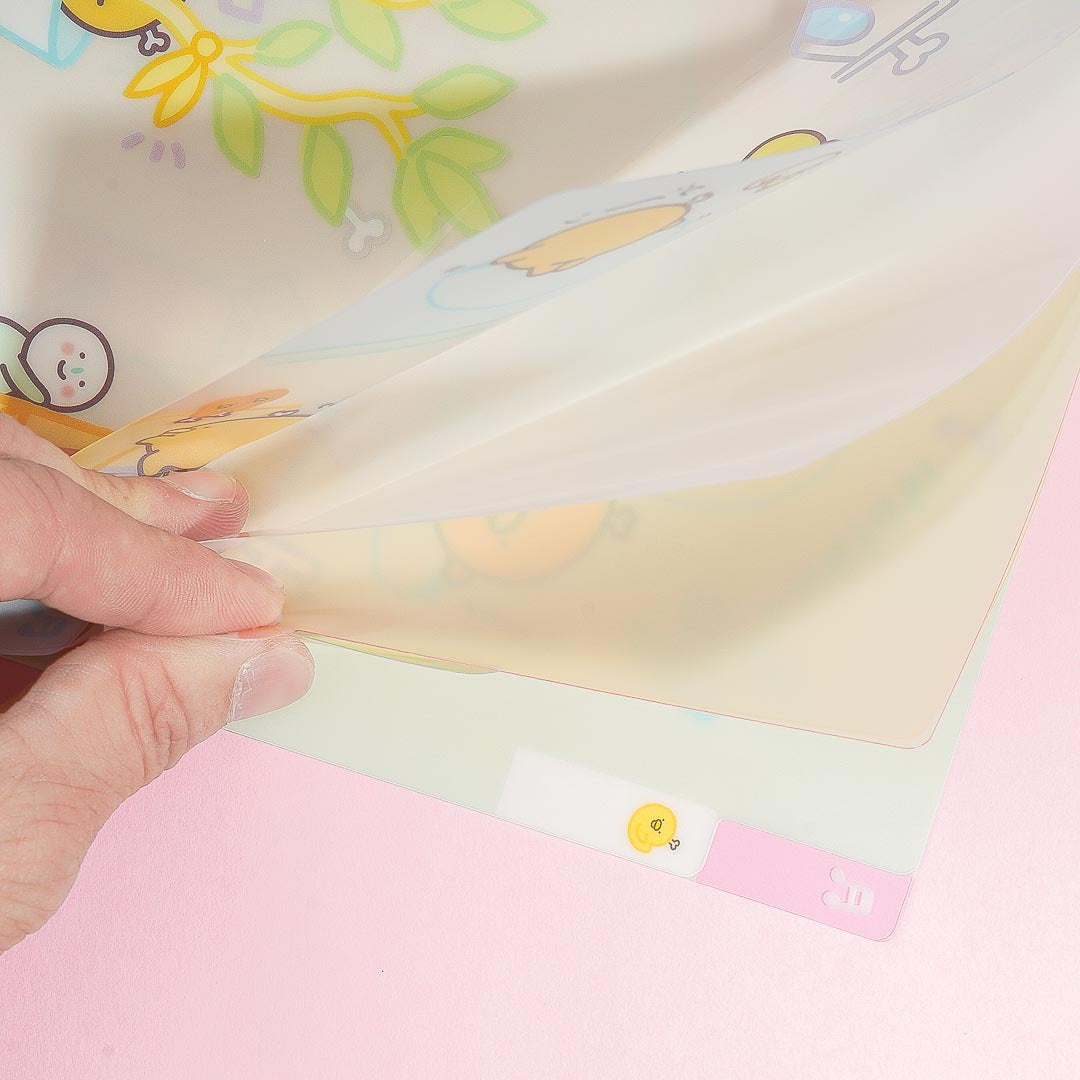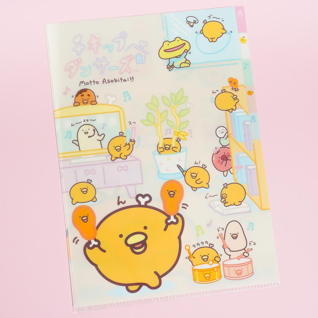 Organize your school works with this kawaii plastic folder! It's decorated with cute characters from the animated series Chickip Dancers. This folder comes in A4 size and has five pockets with matching index tab markers.