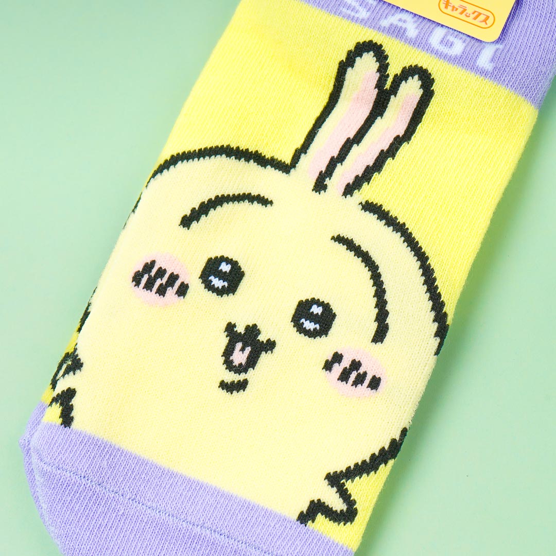 Have fun lounging around the house while wearing this super comfortable pair of socks. It showcases a print of the Chiikawa cutie Usagi blushing!