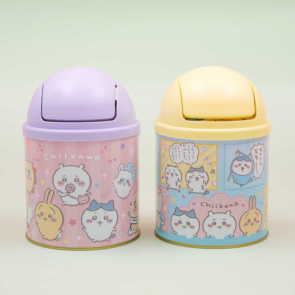 A cute can container with a swinging lid illustrated with Chiikawa characters