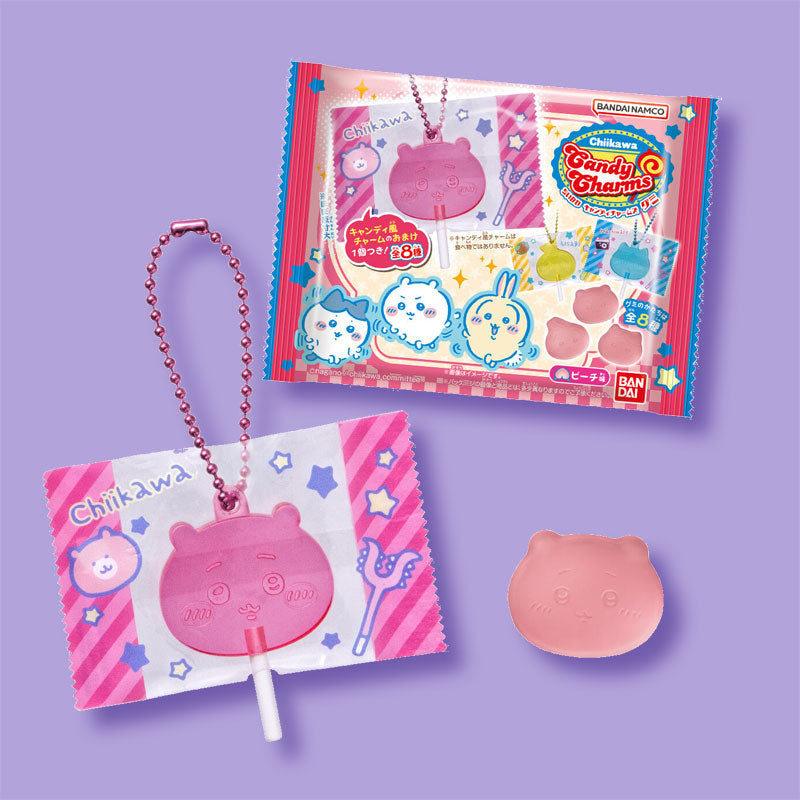Have fun munching on these peach-flavored gummy candies that are shaped like Chiikawa and friends! They also come with a surprise Chiikawa charm that looks just like real lollipop. Hang it on your bag or pouch using the ball chain.