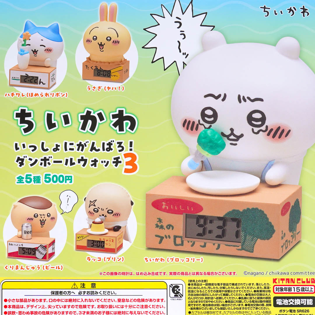 This super cute desk accessory comes from the Chiikawa "Let's Do Out Best Together! Cardboard Watch 3" series of mini clocks in gachapon capsules! It features the kawaii Chiikawa characters sitting on small cardboard boxes with digital clocks. Set it on your desk for an instant touch of kawaii!