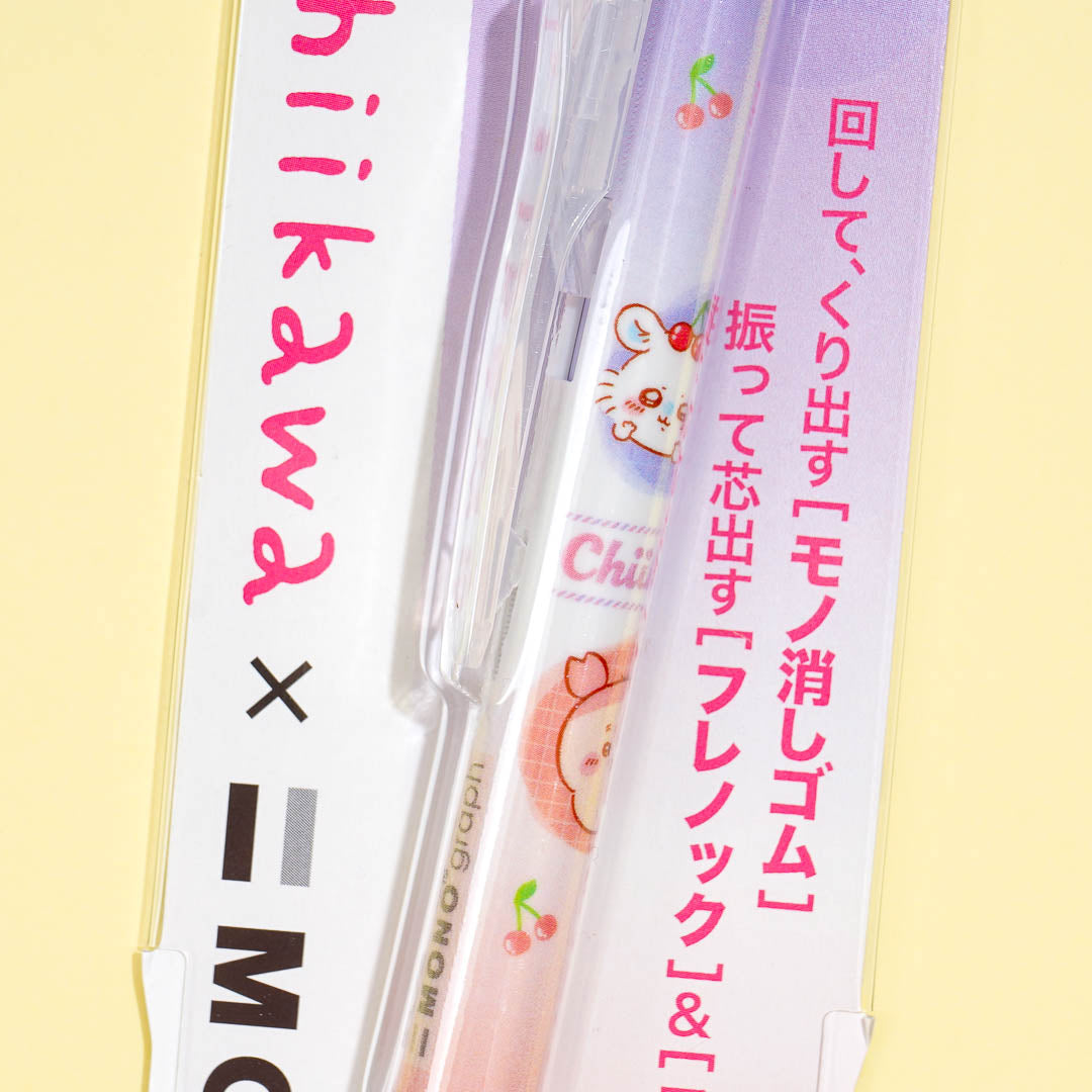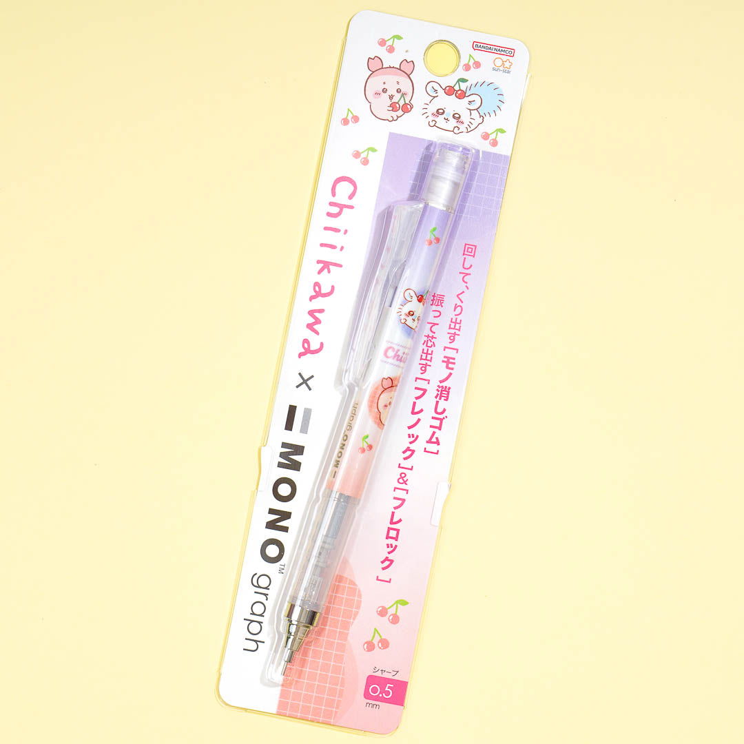 This cute pencil comes from a collaboration between Chiikawa and MONOgraph! It features illustrations of Chiikawa surrounded by cherries. This mechanical pencil has a rotating eraser that's easy to adjust to your desired length. Use it for practicing your sketches!