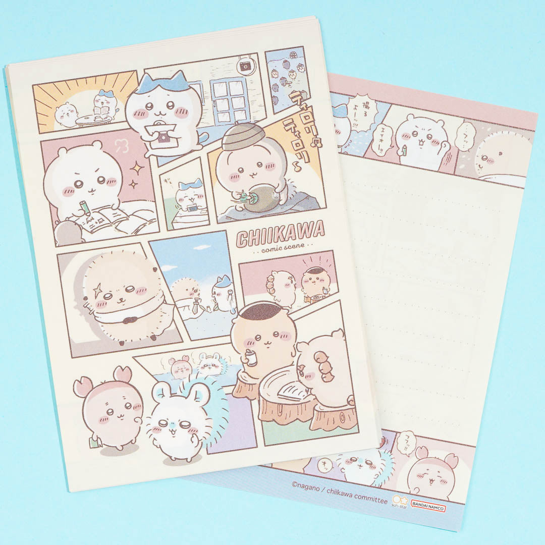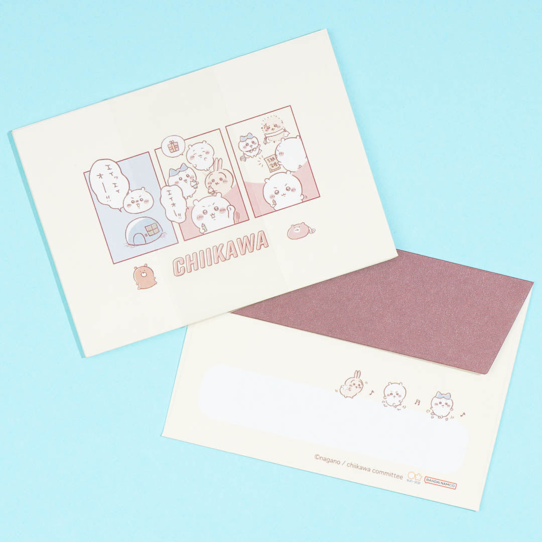 Send heartfelt messages to your friends using this kawaii letter set! It features a comic scene illustration of Chiikawa. The lined sheets and envelopes have cute back-to-back designs!