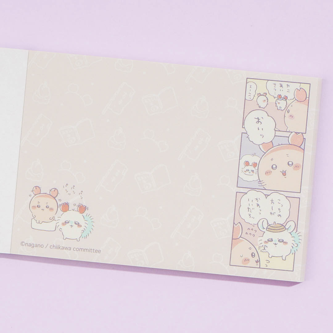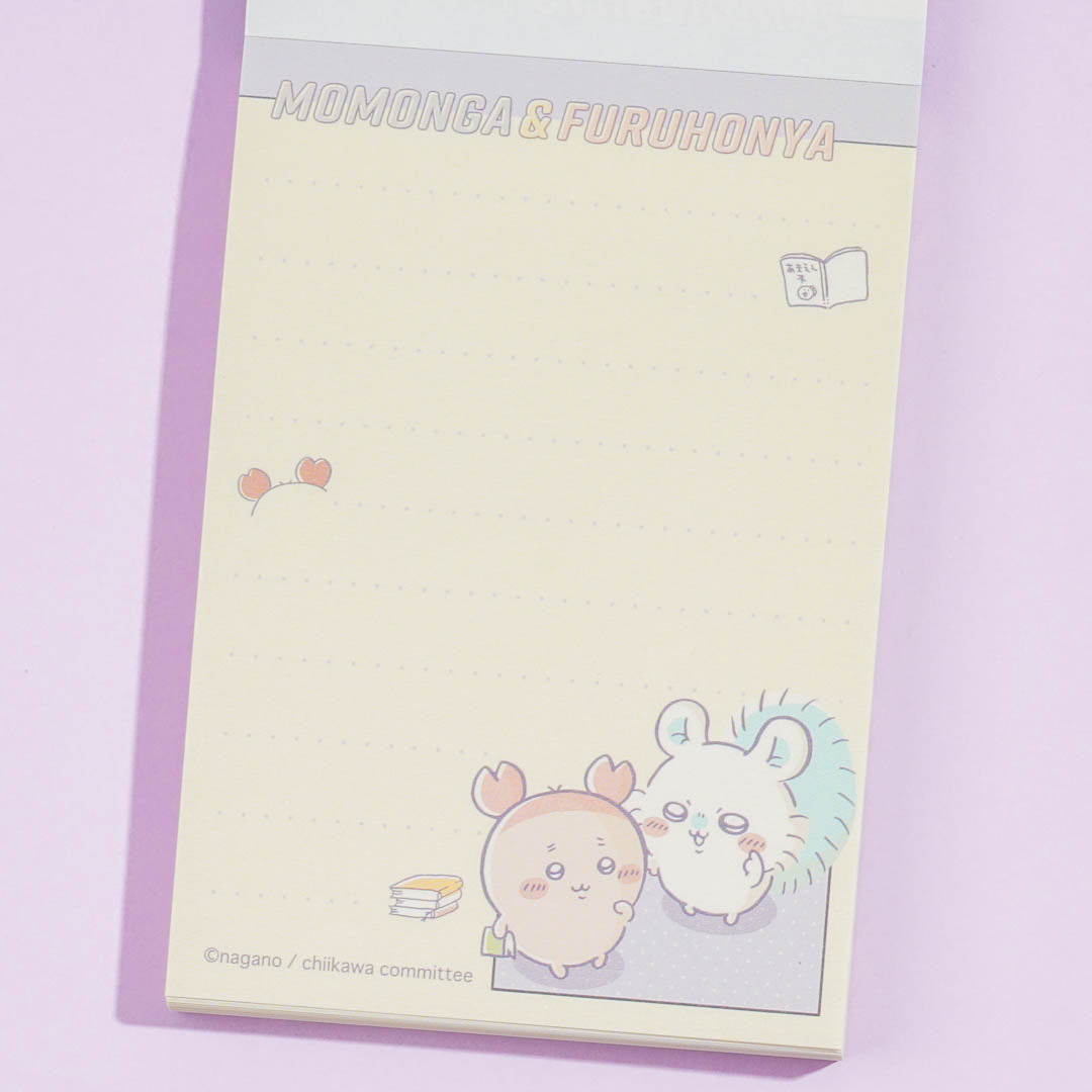 Write your short messages in this super cute memo pad! It features a comic-style print of Momonga and Furuhonya from the Chiikawa anime series.