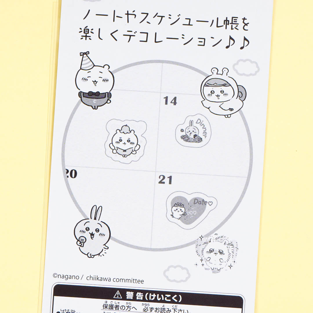 Decorate your calendar using this super cute sticker sheet! It features die-cut prints of Chiikawa and its friends with English labels of things you do every day.