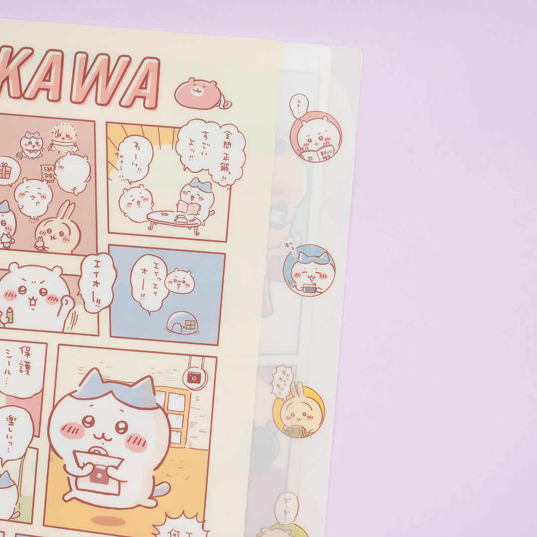 Organize your receipts, photos, letters, and other important documents inside this kawaii index folder! It has a super cute comic strip-like illustration featuring the adorable Chiikawa characters! The handy clear file has five separate pockets for easier sorting.