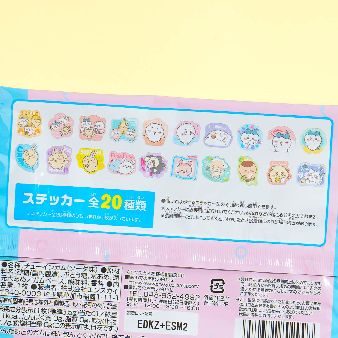 Stick, peel, and reposition your favorite Chiikawa characters with this kawaii sticker! The pack comes with a large die-cut sticker and a yummy soda-flavored gum.
