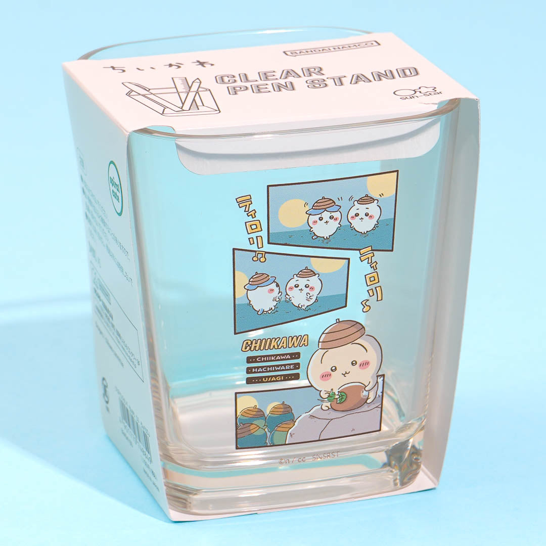 Keep your desk neat and cute with this clear pen holder featuring a manga scene of Chiikawa! It's square-shaped and transparent so you can easily see your pens!