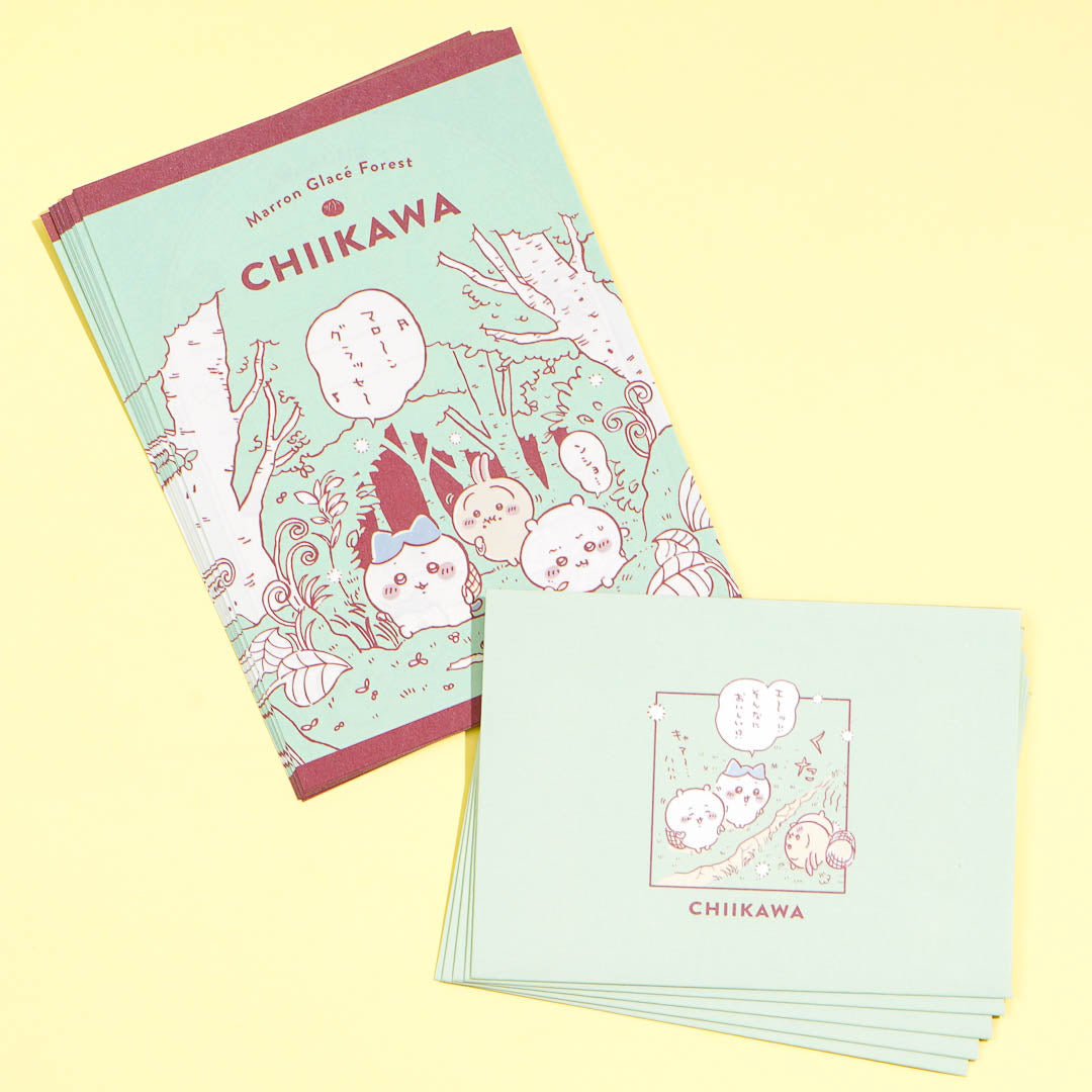 Send special messages to your friends using this super kawaii letter set. It's illustrated with Chiikawa characters exploring a forest! This letter set is the perfect addition to your stationery collection.
