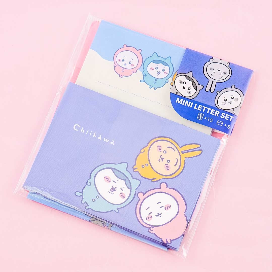 A super cute mini letter set illustrated with kawaii Chiikawa characters at a pajama party