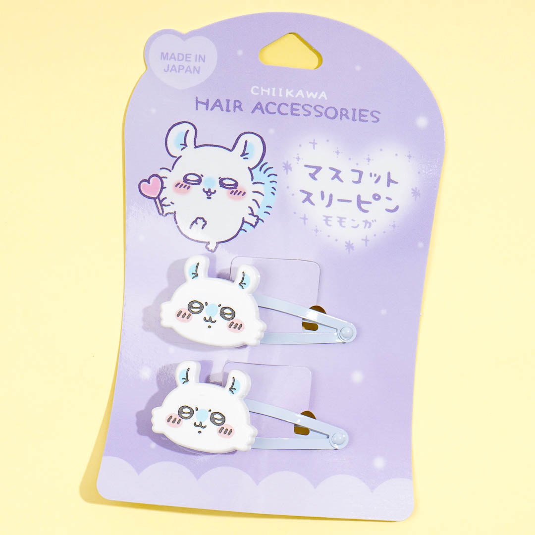 Keep your bangs away from your face with this super cute set of clips. These metal barrettes showcase Momonga from the popular series, Chiikawa!