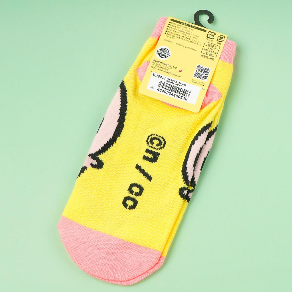 Keep your feet warm and comfy with these cute socks! The ankle-length pair features a blushing Chiikawa in a pink pajama.