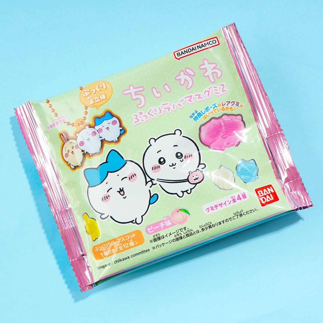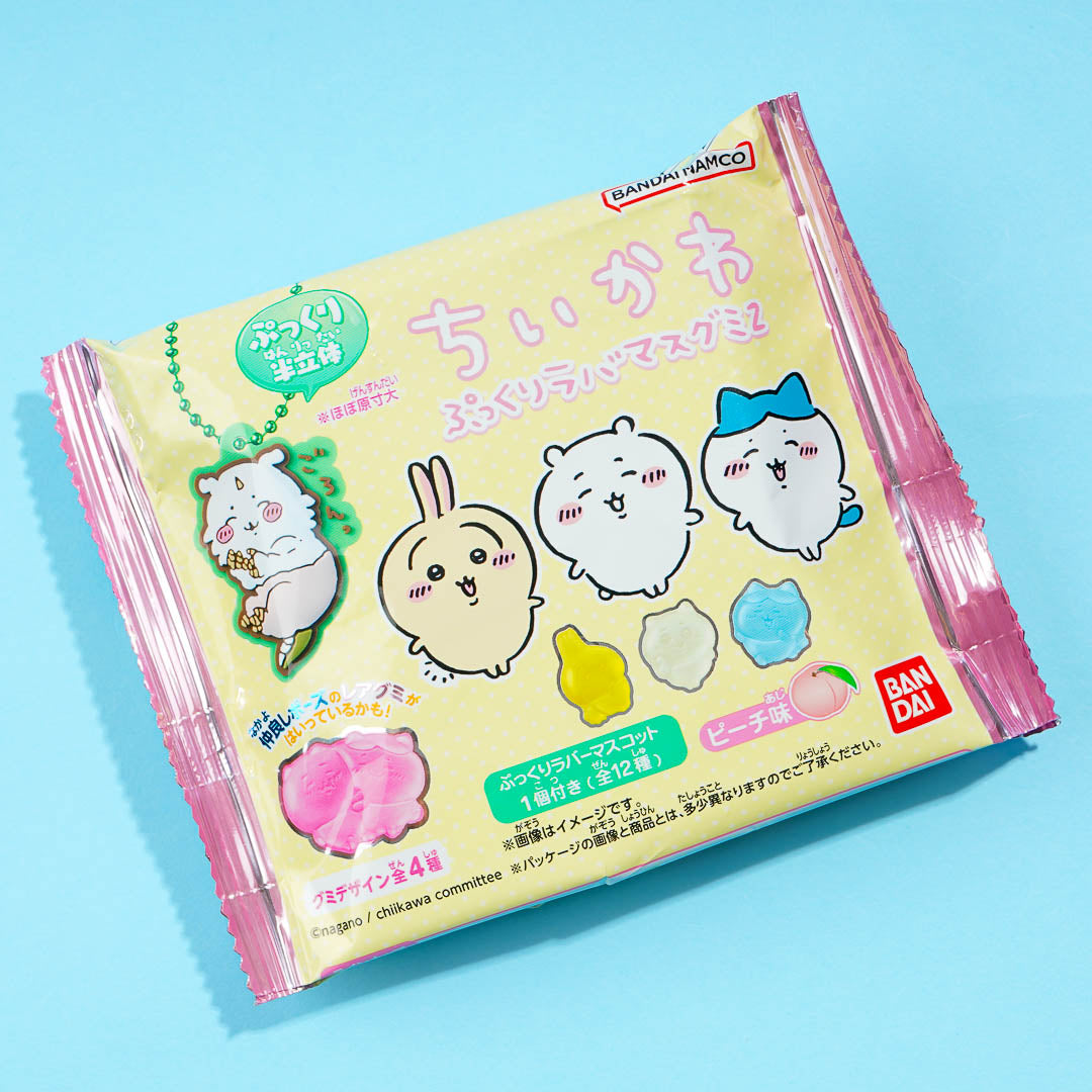 Kawaii-fy your bag with a super cute Chiikawa rubber charm that comes with these yummy gummy candies! The peach-flavored candies are plump and shaped like Chiikawa characters with cute expressions.
