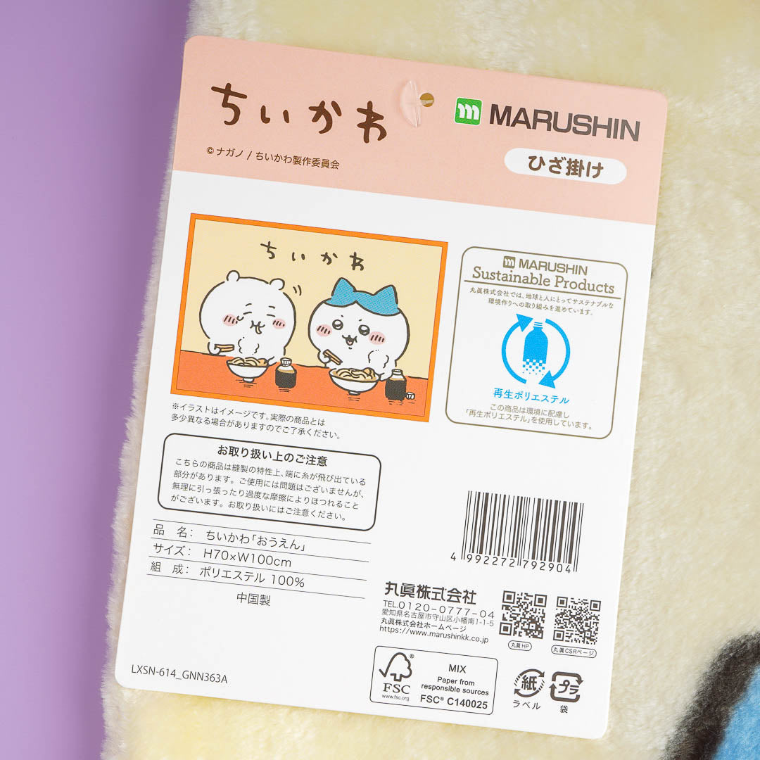 This cute blanket features prints of Chiikawa characters having some yummy ramen! Use it to cover up your shoulders while watching your favorite show on the couch. It's really soft to touch!