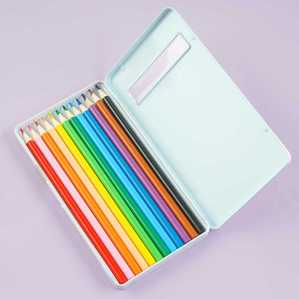 These cute colored pencils come in a tin case that has kawaii prints of dogs taking photos and eating desserts. Use this pencil set when you want to sketch landscapes.