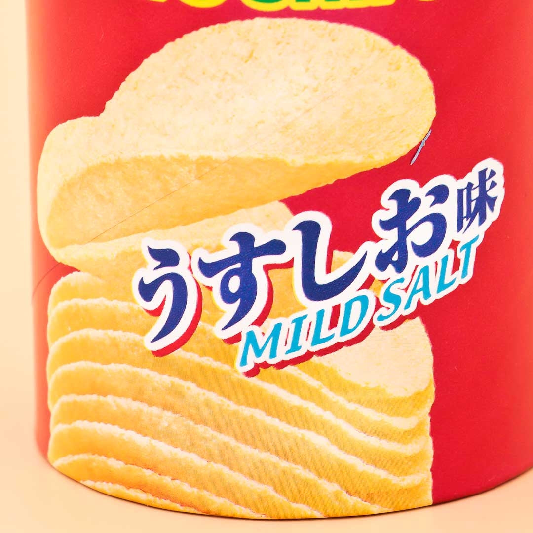 Stacked mild salt potato chips in a handy tube container
