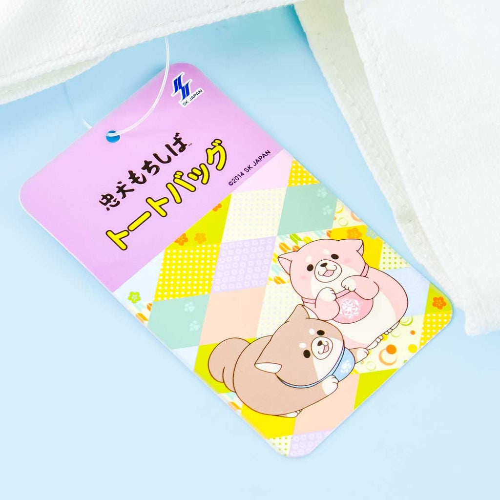 A kawaii canvas tote bag featuring Chuken Mochi Shiba characters and dango balls on stick