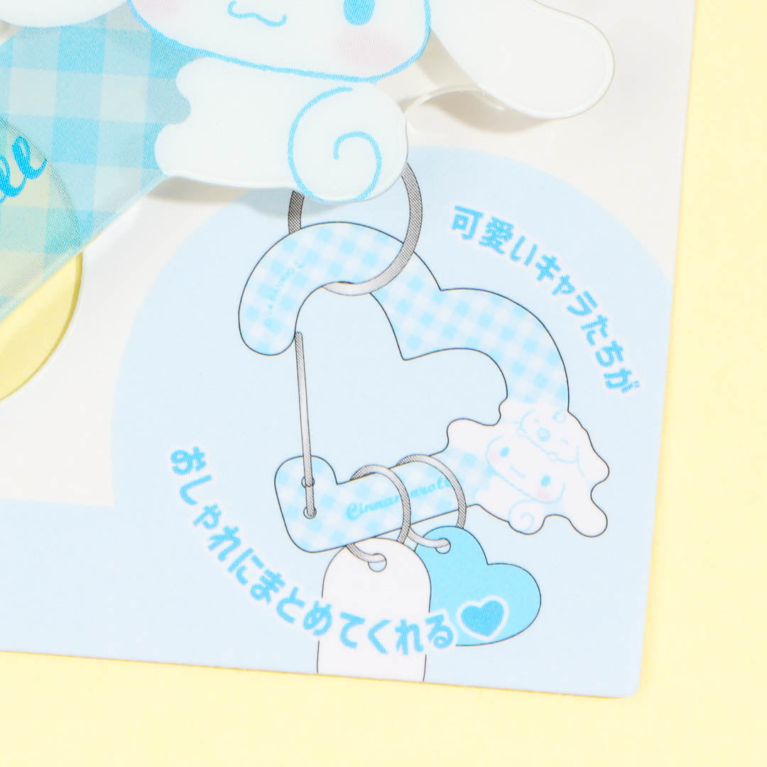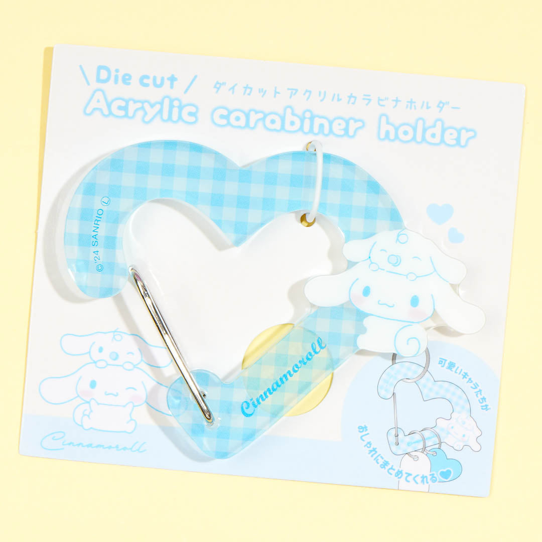 Use this super kawaii heart-shaped carabiner to organize your keys! This acrylic carabiner features a print of Cinnamoroll hanging out with his buddy Milk. You can also use this carabiner to attach your charms to your bags!