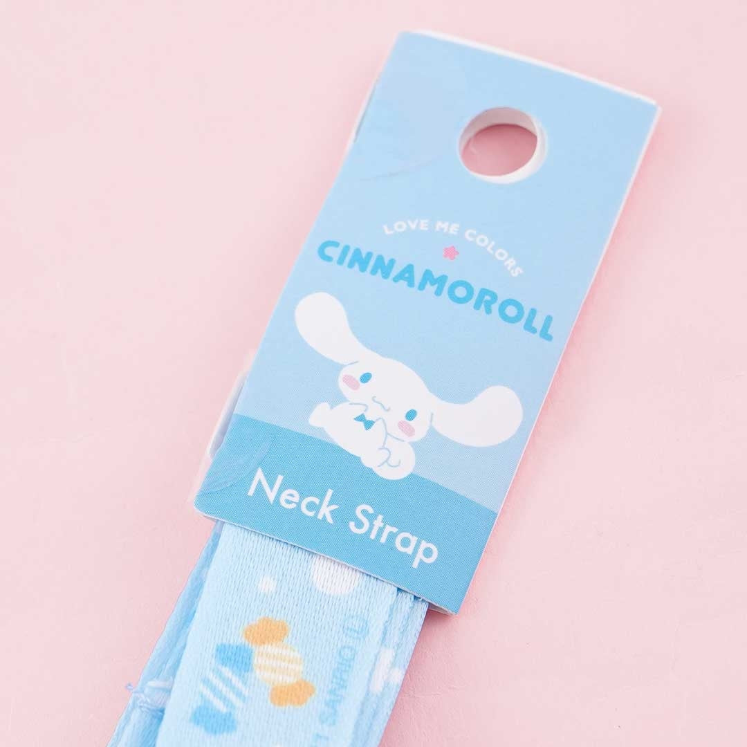 A kawaii lanyard illustrated with prints of Cinnamoroll and his favorite treats