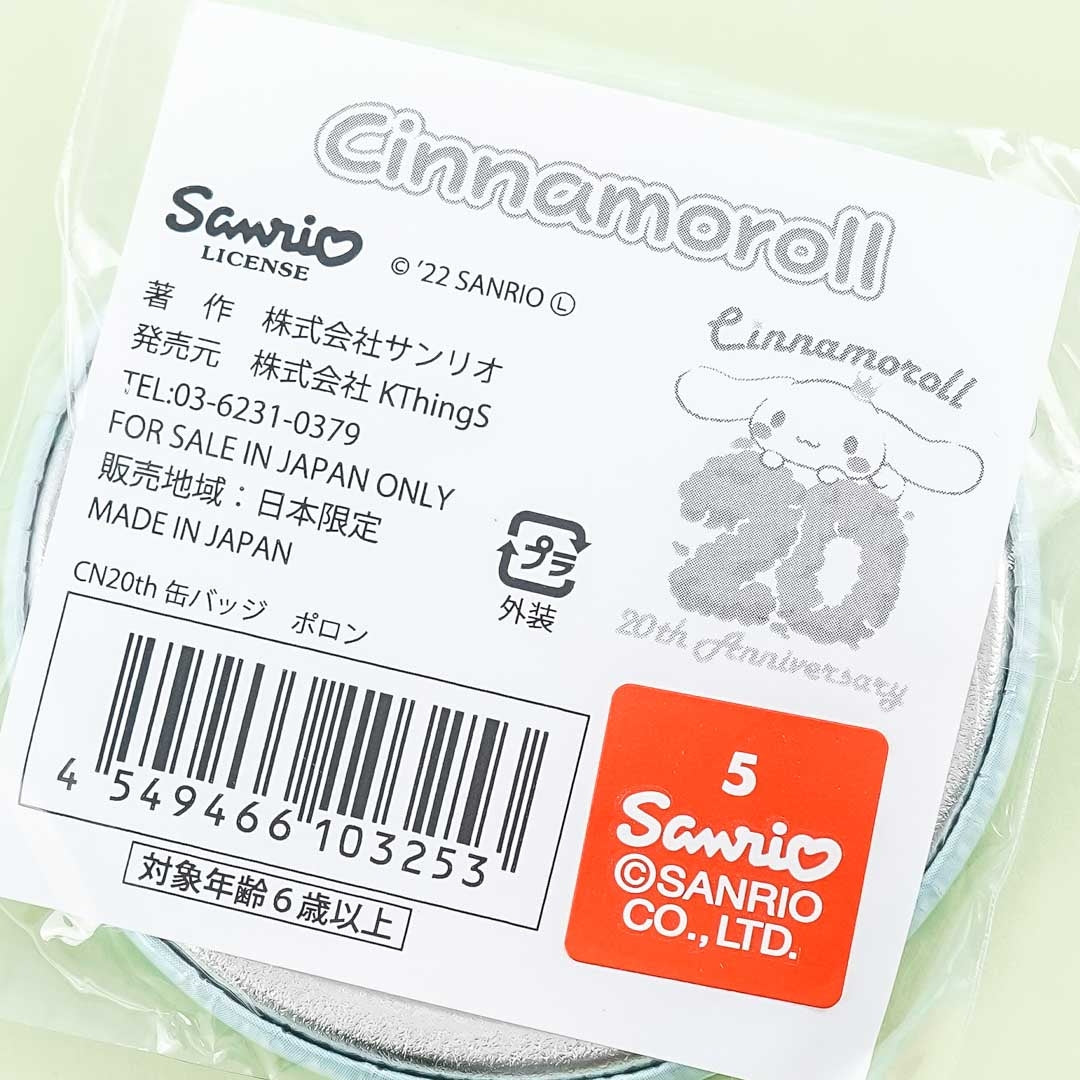 This pin was designed for Cinnamoroll's 20th year. It is printed with an illustration of the light-pink-colored puppy, Polon, who wears a puffy bow on her head. Kawaii-fy your travel bag with this super cute aluminum badge!