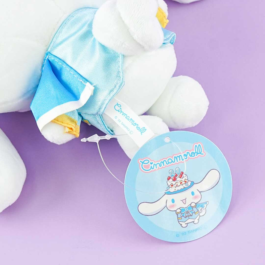 Have fun playing with this kawaii Cinnamoroll plushie! This small-sized cutie is made of fluffy polyester and is wearing a birthday cake hat in celebration of his twentieth anniversary.