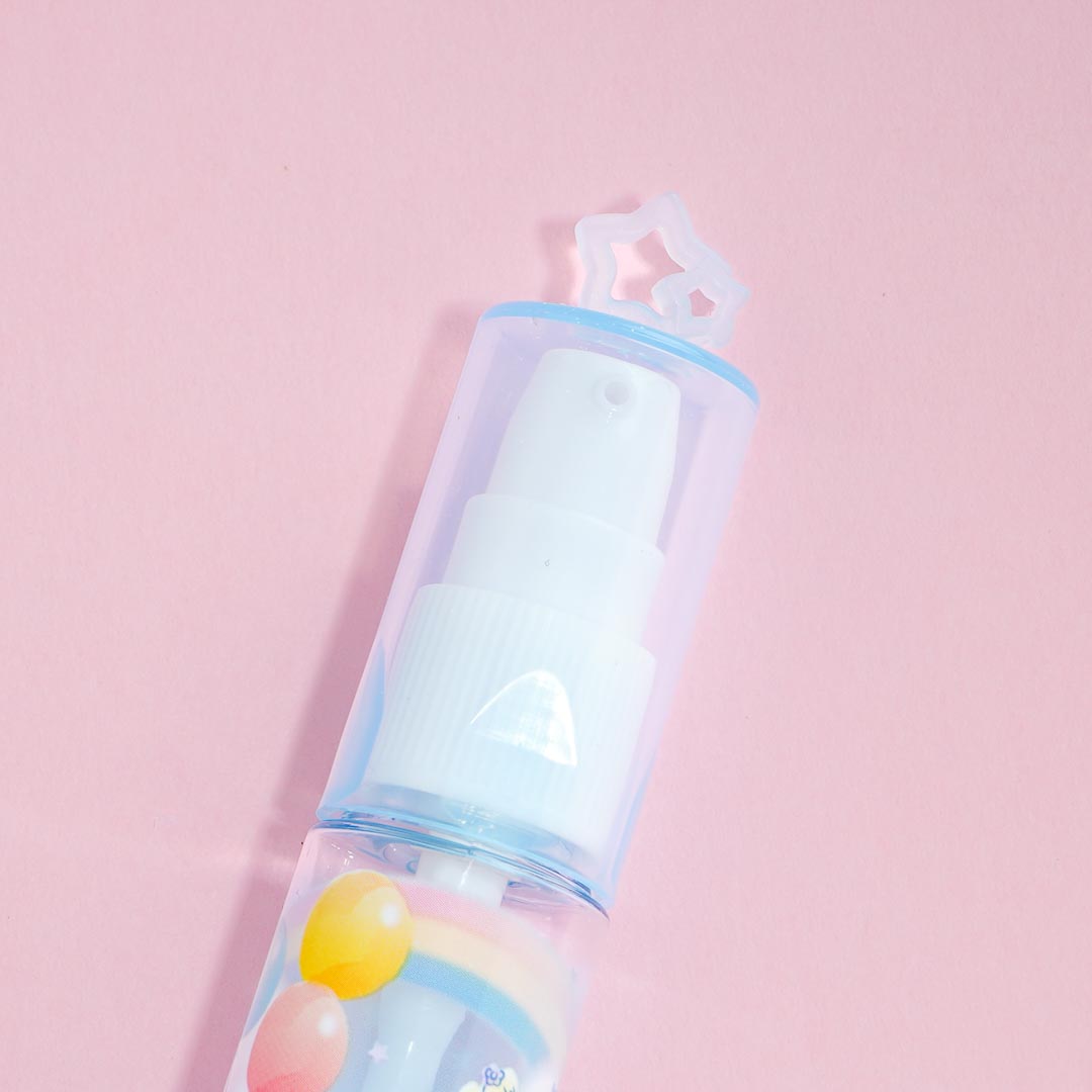 Store some nice cologne or perfume in this cute spray bottle! It's decorated with prints of Cinnamoroll flying in the sky with balloons. This handy spray bottle has a lid so that your perfume stays safe and secure.