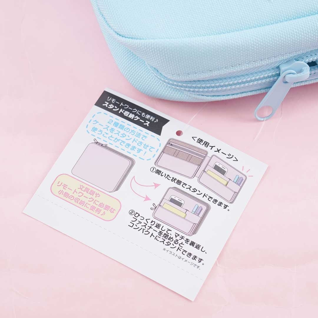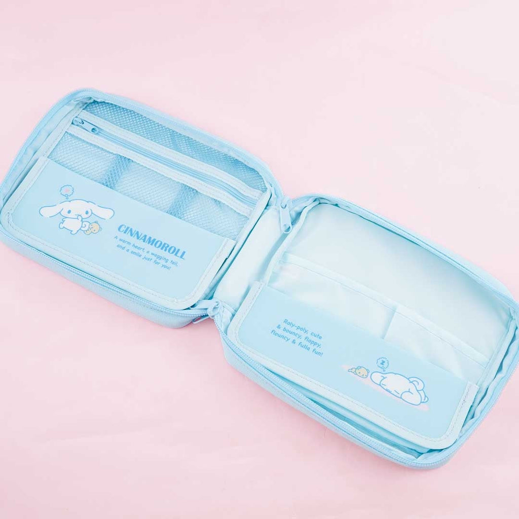 Organize your desk by placing your small notepads, paperclips, highlighters, and other office supplies inside this special storage case that can stand on its own in two various ways! It’s decorated with illustrations of Cinnamoroll having lots of fun with his newfound friend — a tiny bear cub! This kawaii case comes with dual zipper closures and multiple pockets as well.