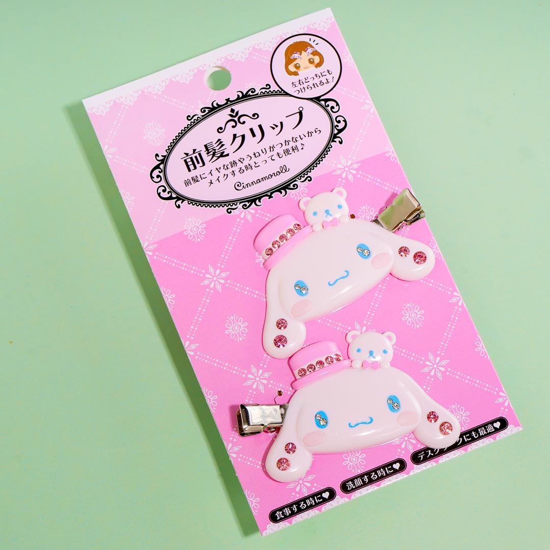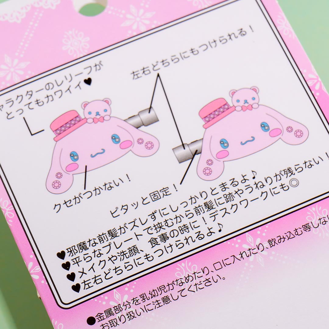 Keep your bangs away from your place while applying a beauty mask by wearing this cute pair! These clips come with sakura or pink-edition Cinnamoroll charms that have jewels on the ears.