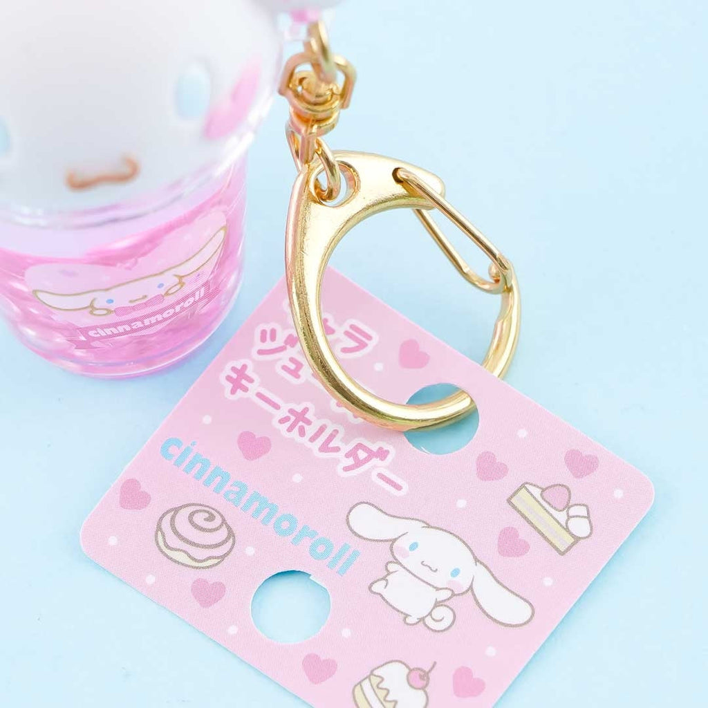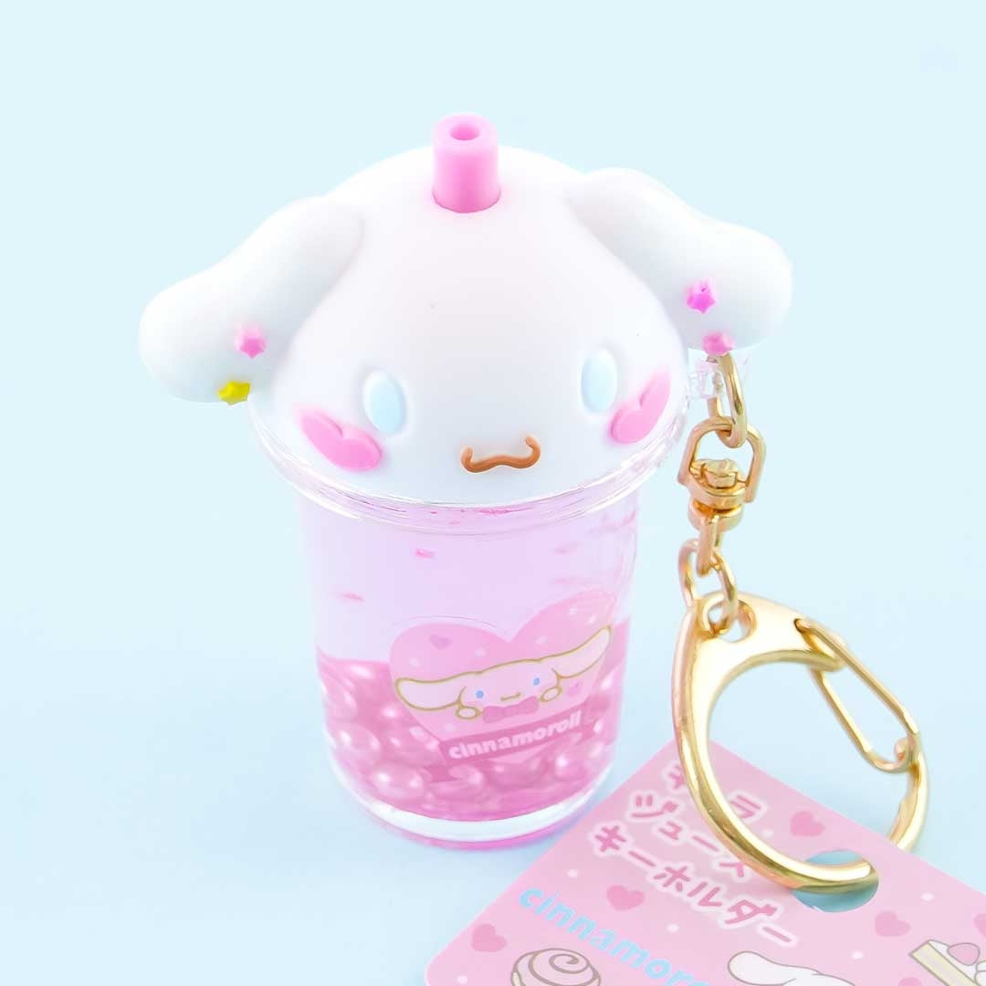 A cute Cinnamoroll bubble tea charm with shiny pearls inside it