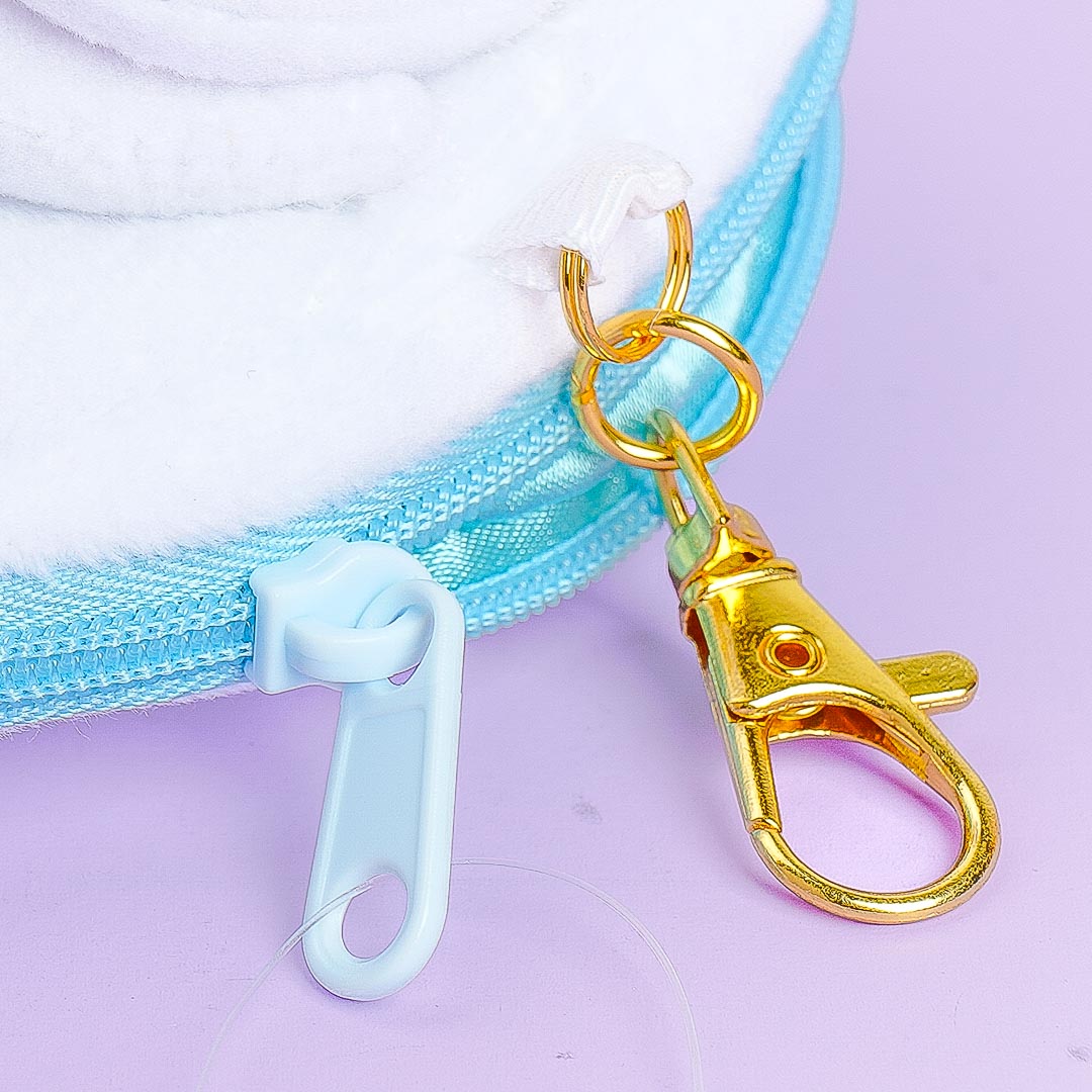 The back of this super kawaii zippered purse looks just like Cinnamoroll's fluffy butt! Use it to store your coins. It also showcases embroidery of Cinnamoroll. You can attach charms using its metal clip.