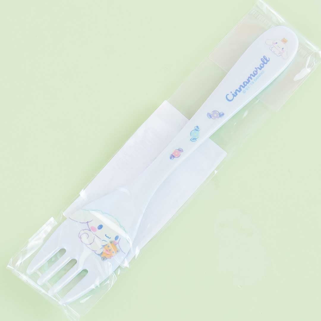 A fork decorated with illustrations of Cinnamoroll and sweets