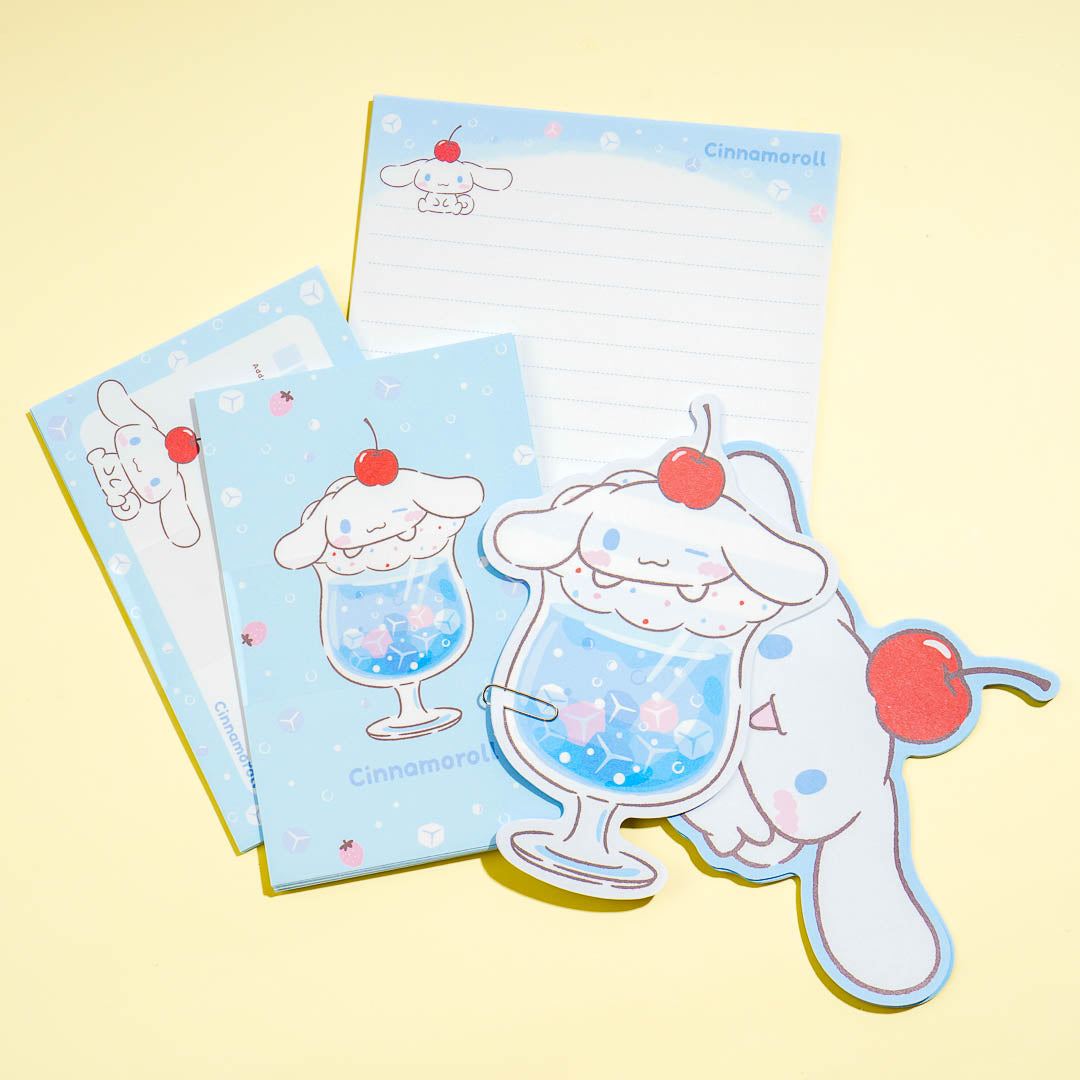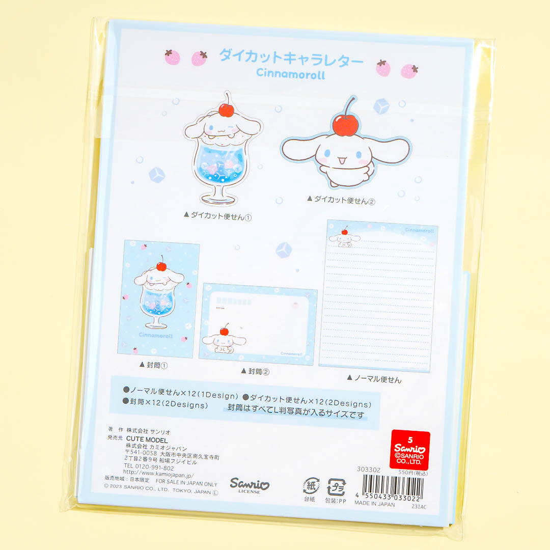 This cute letter set features Cinnamoroll popping out of some cherry soda! It's perfect to use for sending out sweet messages to loved ones during special occasions. Add it to your collection of stationery paper!