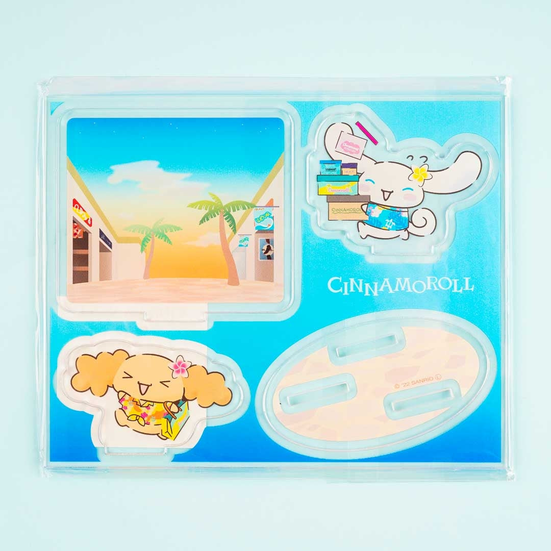 • A cute acrylic standee showcasing Cinnamoroll and Chiffon on vacation