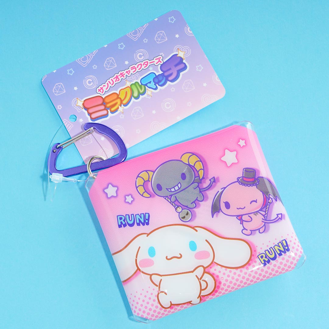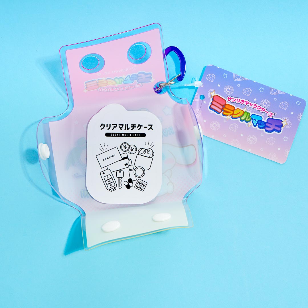 Bring along your charms using this kawaii multi-purpose case illustrated with Cinnamoroll and the Cinnmoangels! It has two button closures at the back. If you open the button up then it'll open the entire surface of the case.
