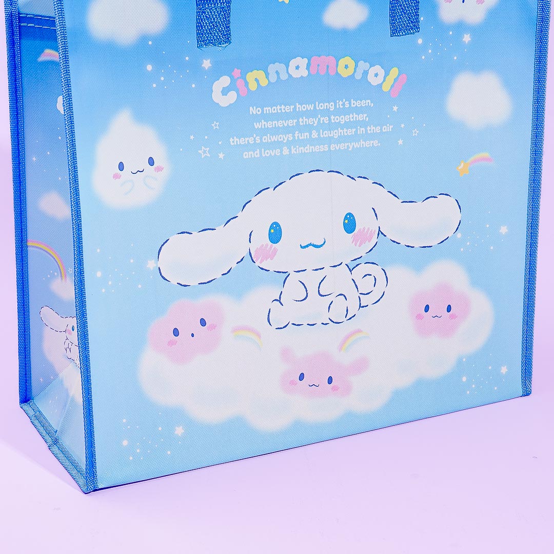 This super cute tote bag features kawaii illustrations of Cinnamoroll hanging out with friends on fluffy clouds! Use this roomy bag to carry books or even groceries.