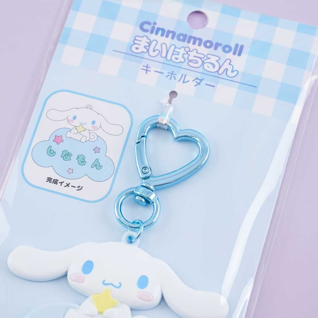 Organize your house keys using this kawaii keychain! It features a die-cut design of Cinnamoroll on top of a cloud and a heart-shaped metal clip. You can also customize this charm by attaching some Japanese Hiragana characters that are sold separately — at the bottom part.