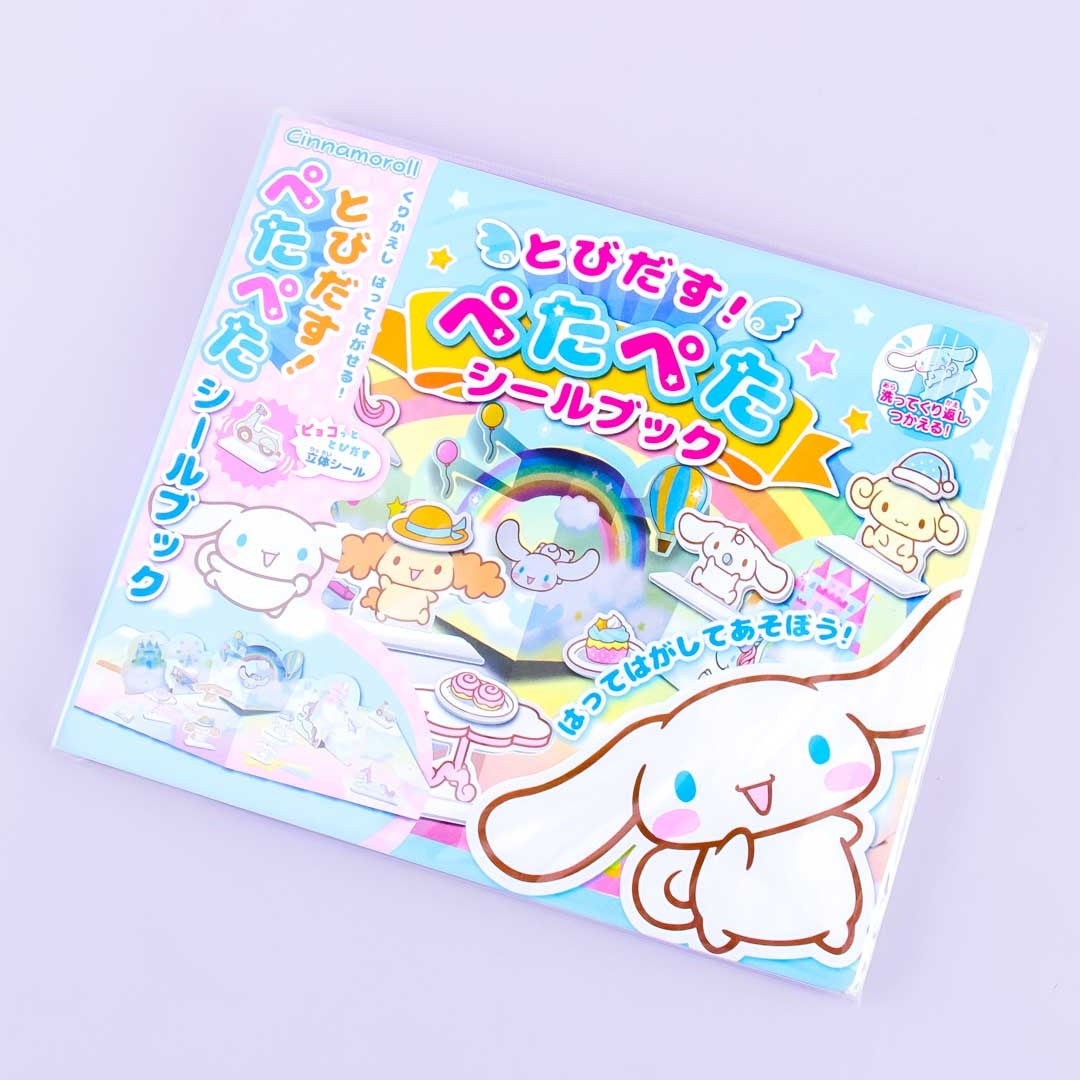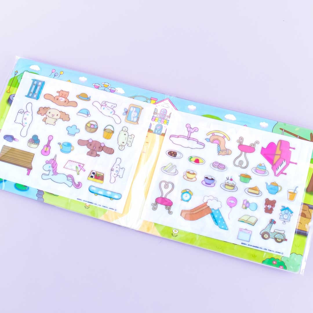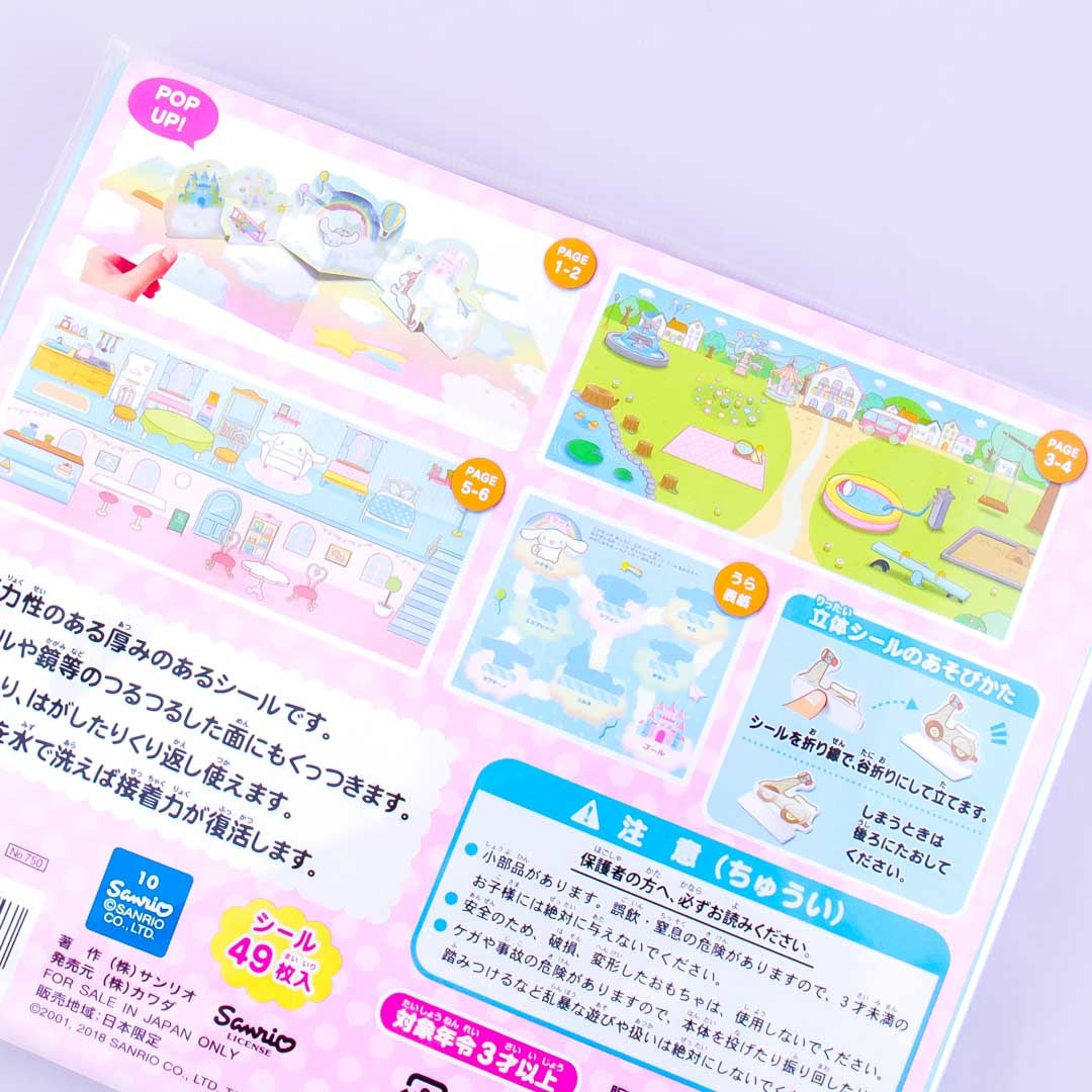 A kawaii pop-up sticker book featuring Cinnamoroll and his town on the clouds