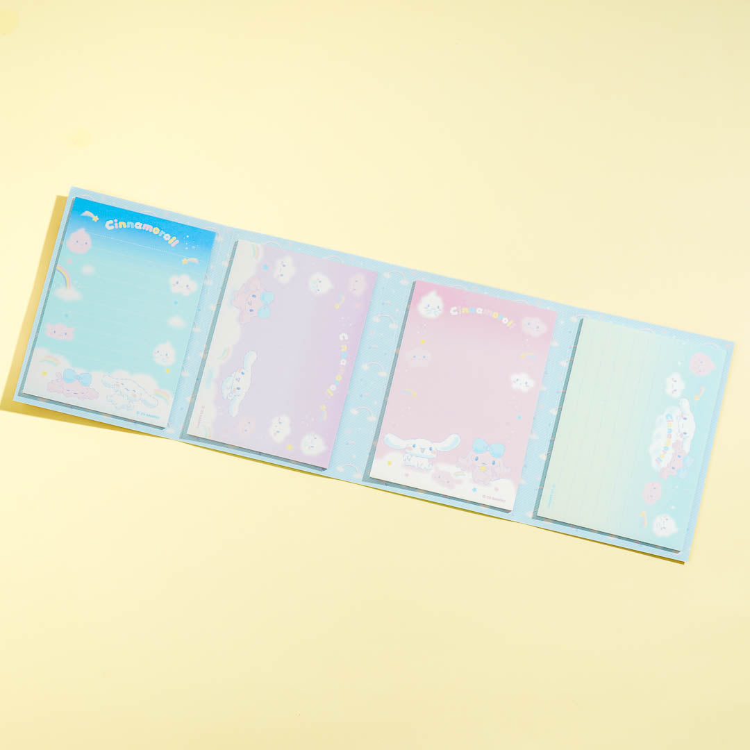 Use this super kawaii memo pad set to write down important notes and reminders. It features prints of Cinnamoroll hanging out with friends among the clouds! This memo pad set is the perfect addition to your stationery collection.