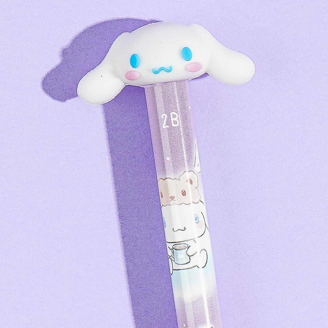 Use this kawaii pencil to write stories and poems! It's illustrated with Cinnamoroll hanging out with his friends among the clouds. This 2B pencil also has a super cute Cinnamoroll topper.