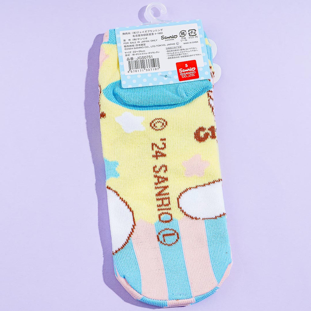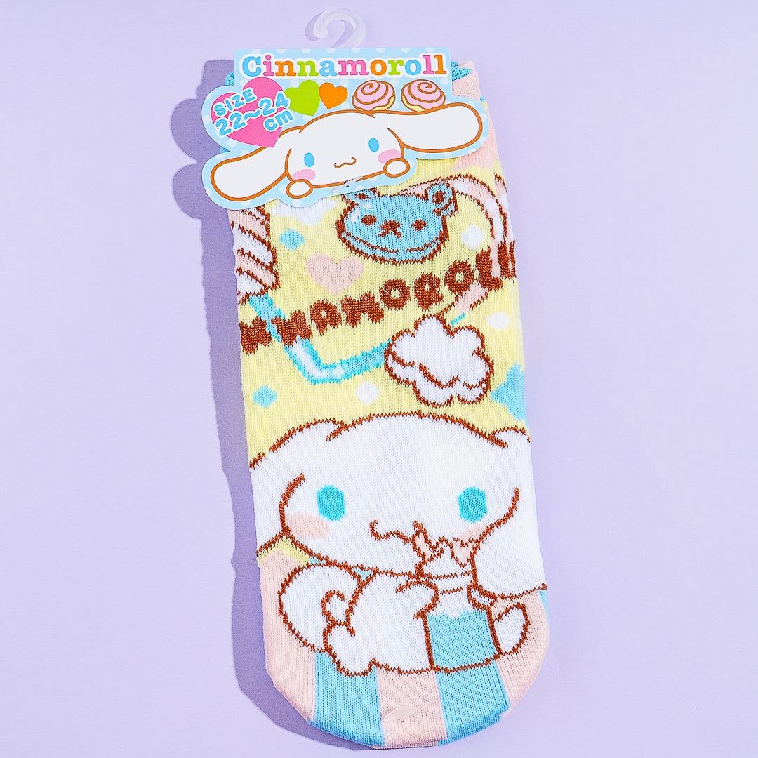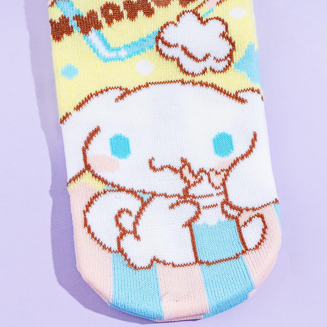 Don't forget to put on these Jacquard socks before you wear your shoes heading out of the house. It showcases prints of Cinnamoroll drinking some ice cream soda! They're super comfy to wear.