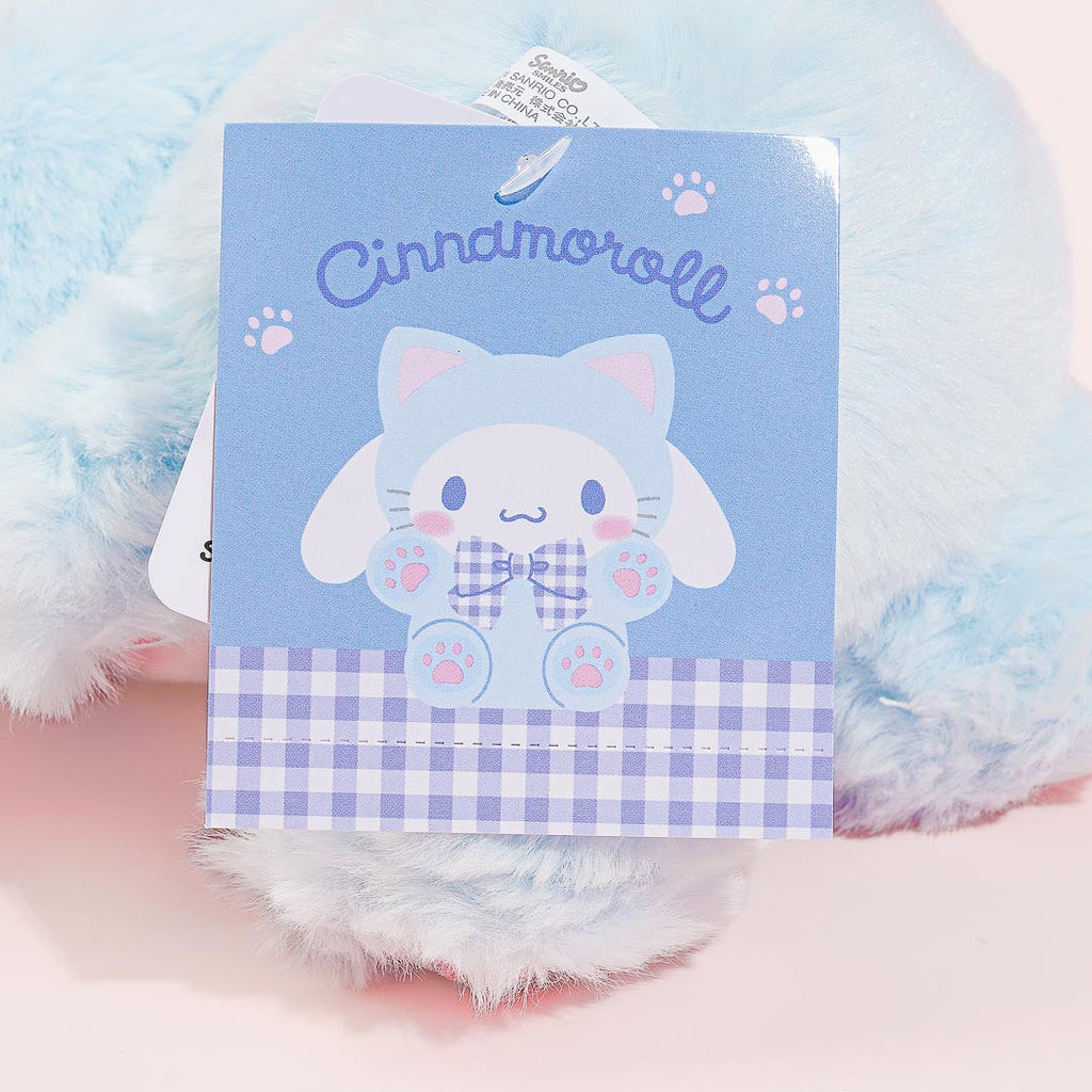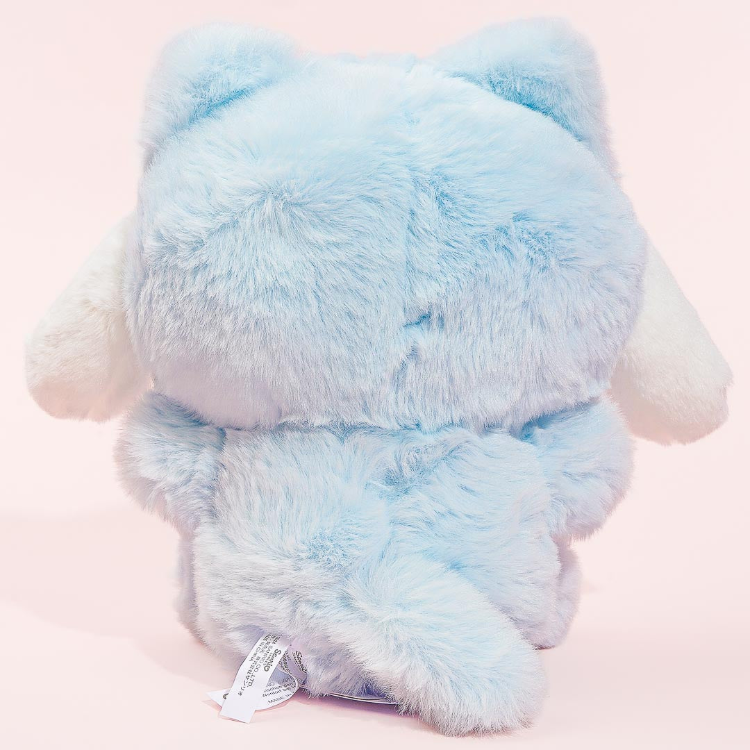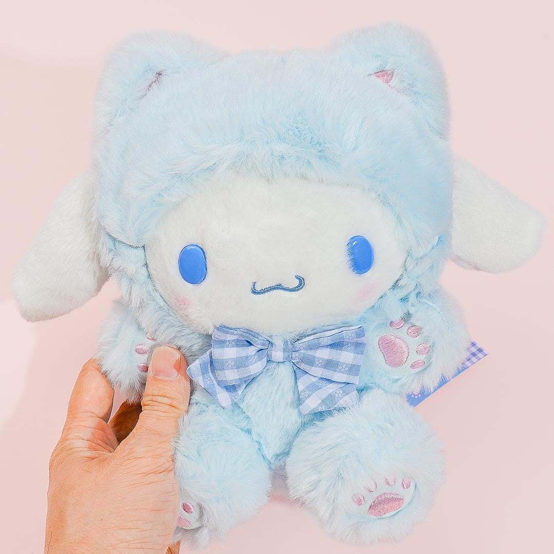 Add this super kawaii Cinnamoroll plushie to your growing toy collection! This medium-sized cutie is dressed like a sky-blue furry cat with a bushy tail and embroidered paws! This unique design was created especially in celebration of “Cat Day.”