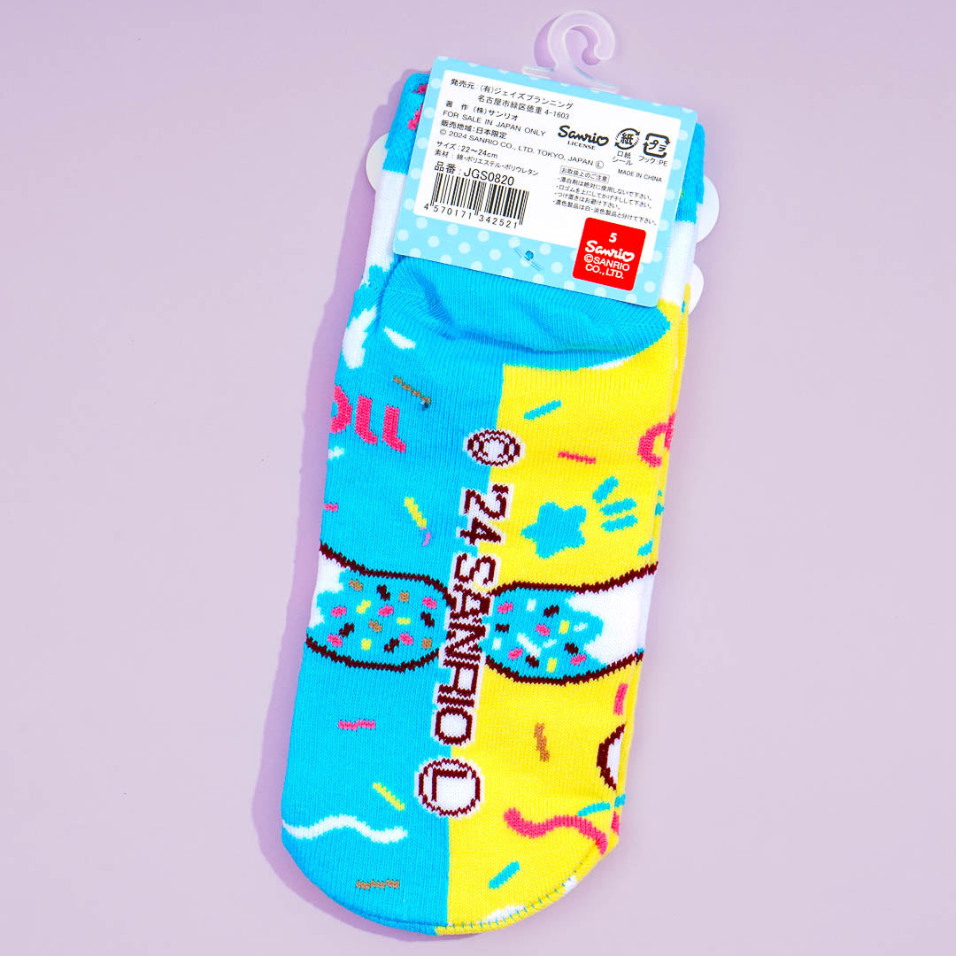 Put on this pair of super kawaii socks before wearing your shoes! It's illustrated with Cinnamoroll wearing a dapper outfit while holding up a yummy donut.