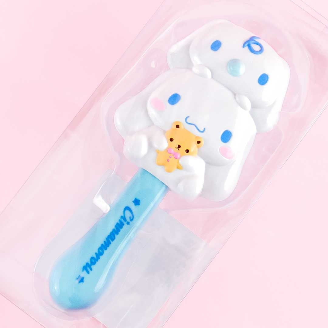 A die-cut paddle hairbrush featuring Cinnamoroll