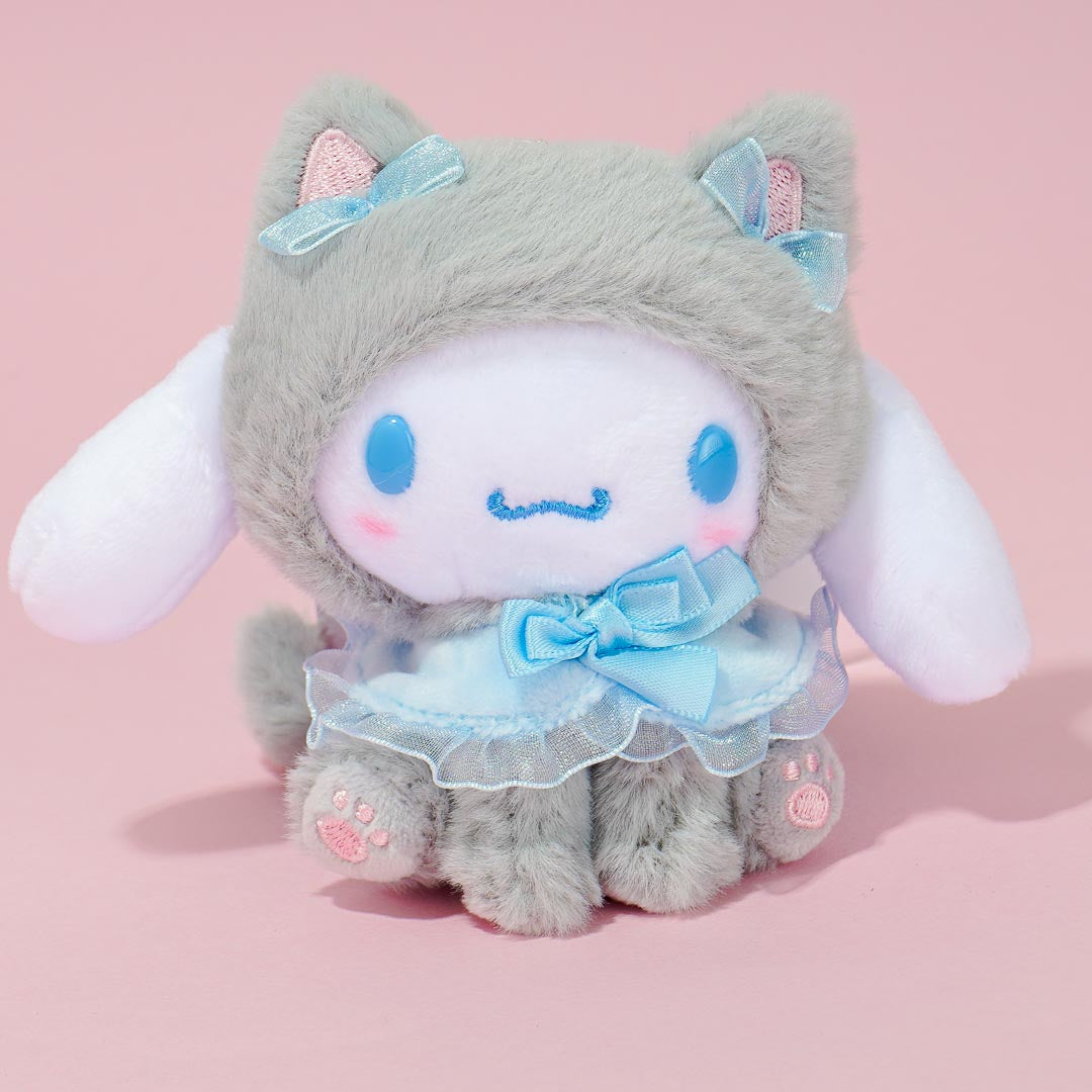 Have fun playing with this kawaii Cinnamoroll plushie charm that’s wearing a lacy cat hoodie costume! You can also attach this cutie to your favorite backpack!