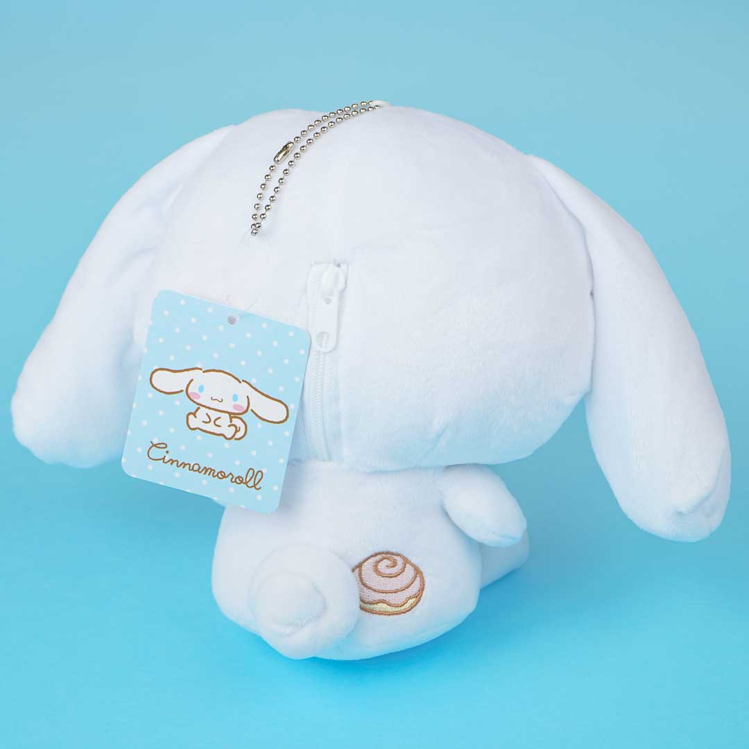 Store your cosmetics or loose change in this super cute Cinnamoroll plushie with zippered pocket and embroidered details! It's a medium-sized plushie pouch that also comes with a ball chain so you can attach it to your bag.