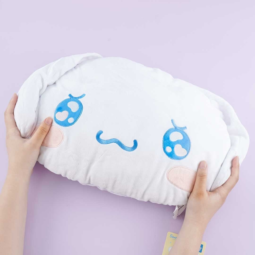 Use this super kawaii die-cut Cinnamoroll cushion to decorate your sofa! It comes from the "Emo Kyun" series. This cushion features applique embroidery that makes it look like a cute stuffed animal.