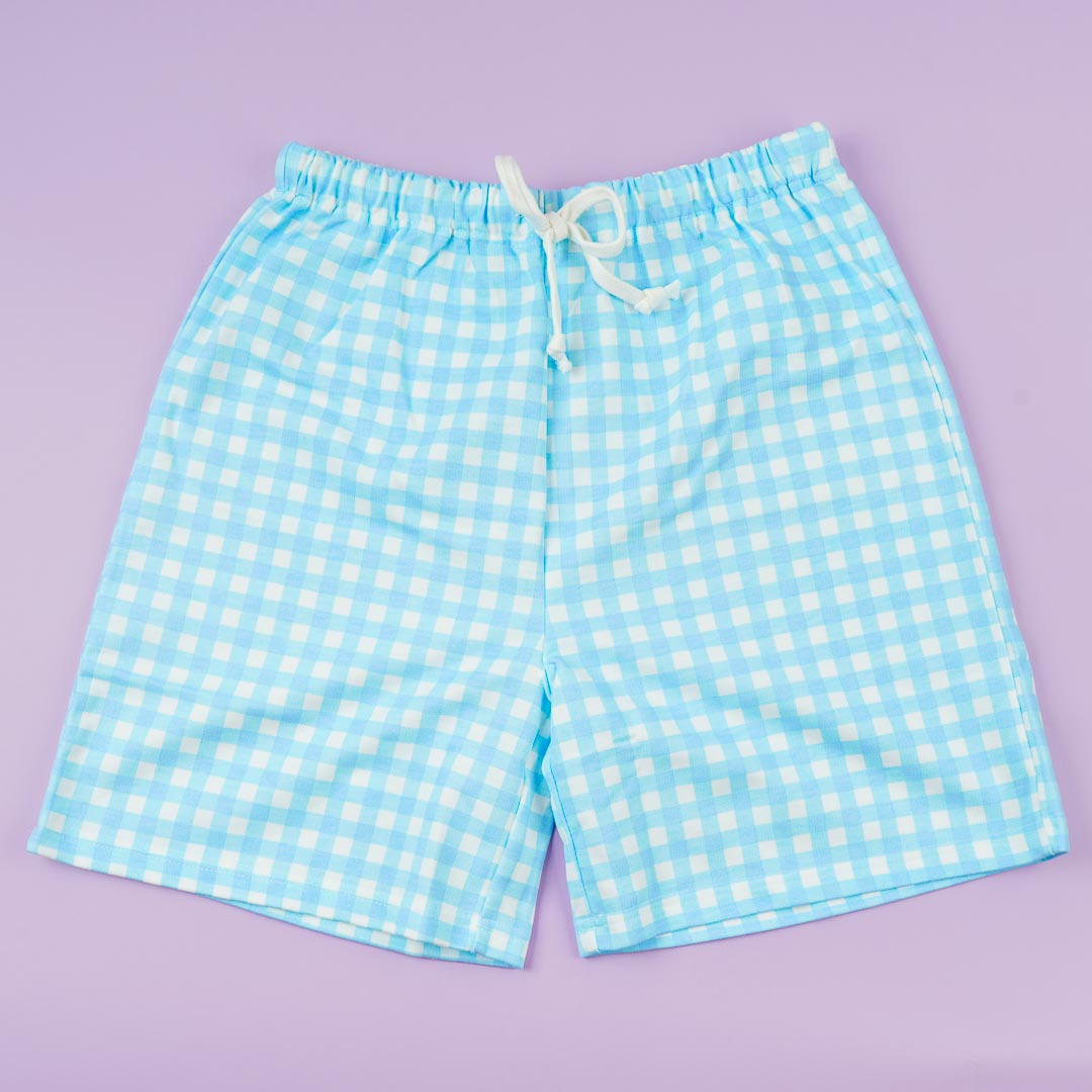 Look comfy and kawaii with this cute Cinnamoroll pajama set! It features Cinnamoroll's face on the shirt and elastic checkered shorts. You can wear it while you're chilling at home with friends.