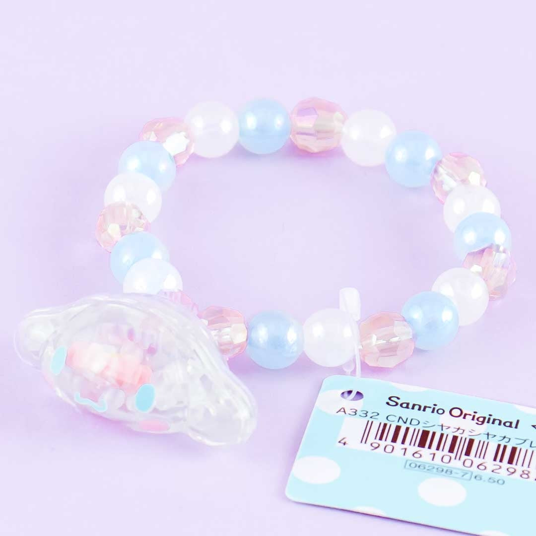 A cute beaded elastic bracelet featuring a transparent decor shaped like Cinnamoroll's head