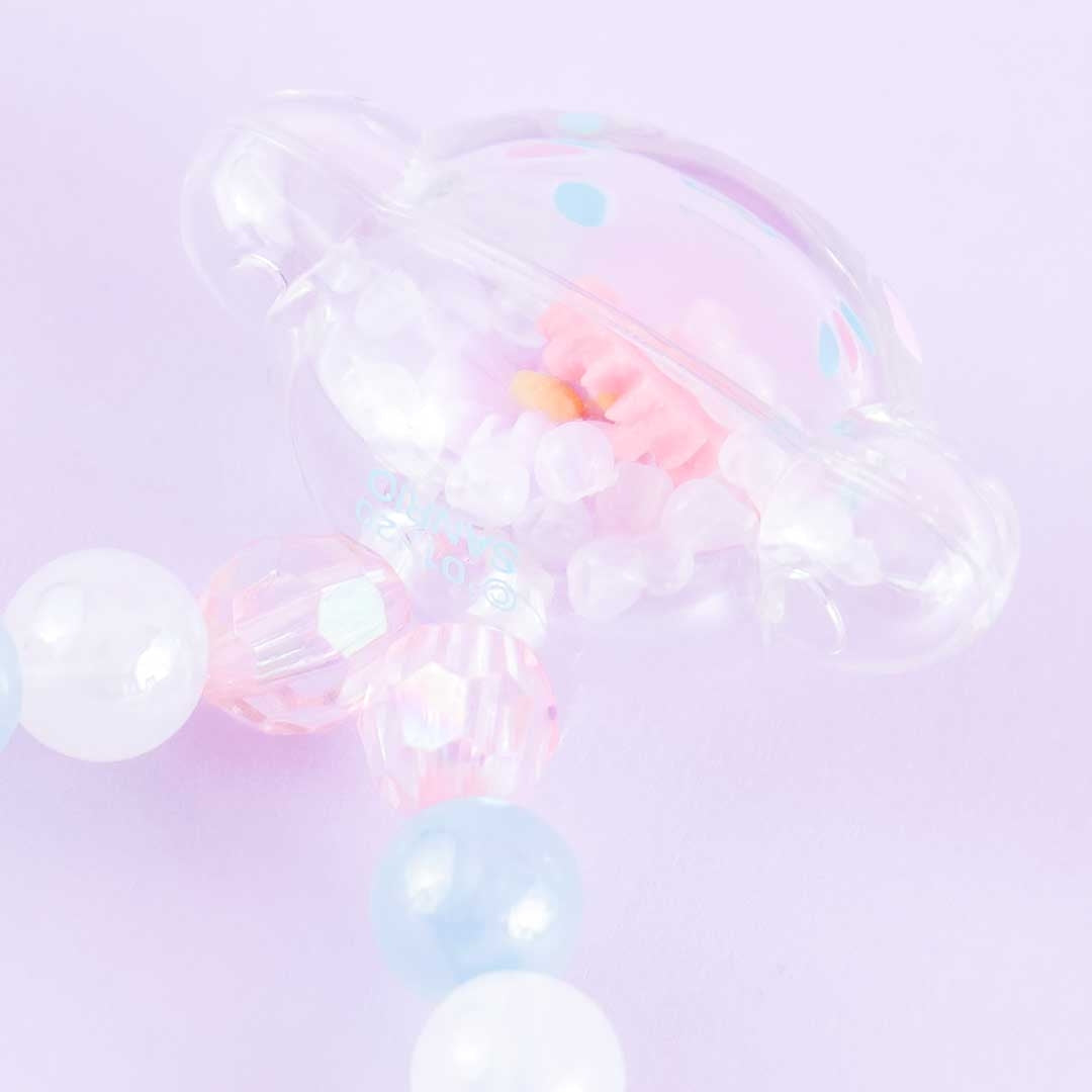 This super kawaii beaded elastic bracelet has a transparent decor shaped like Cinnamoroll's head. Its Cinnamoroll-shaped decor has flower beads inside it. Wear this cute bracelet to kawaii-fy your outfit ensemble!